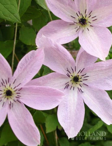 This vigorous viticella type clematis is a profuse bloomer all Summer once it is established. The light pink flowers have a nearly iridescent glow to them, and can often appear white with a sheen of pink. The 4″ blooms will dazzle your trellis or fence from June to September once it begins blooming. Please note that since this is a 1 year plant it make take 2-3 growing seasons, before you will see the prolific blooms, however it will be worth the wait for this hardy and vigorous perennial vine.