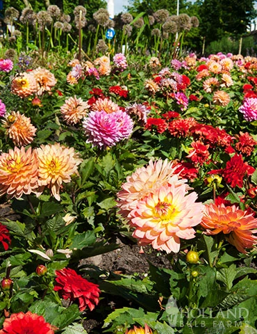 Gallery Mix Dahlias are a showy and compact group of dahlias that are perfect for container gardens. This blend of some of the best border dahlias will brighten up your patio and container plantings, borders and beds.
