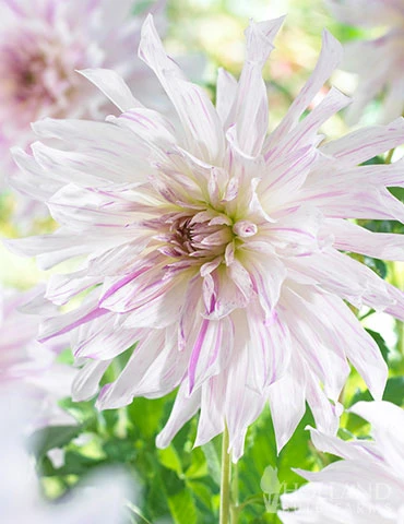 Large showy blooms appear on Mom’s Special Dahlia in mid-summer and don’t stop until the first frost of the year. Blooms are up to 8″ in diameter two toned white with violet accents throughout the petals. Dahlias perform best in full sun, with soil that drains well. Mix in with perennials or plant in the back of the garden border, as this special dahlia grows 4′ feet tall!