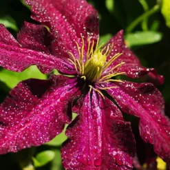 Niobe Clematis is a winner all around! It’s large 6-8″ diameter blooms of deep, velvety red will knock your socks off in June and July. This hardy clematis prefers full sun for best growth and blooms results. Can be grown from North Dakota to New Mexico and has been toted as a strong and long bloomer.