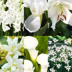 Enjoy flowers in the garden at all times of the day by planting a Summer Moonlight Garden. This collection of flower bulbs and perennial roots blooms with white flowers that show up at night. Plant the bulbs and flowers in this collection in pots. Space them out in the garden near patios to enjoy the blooms at a night time gathering with friends. Or plant them on a garden path to help brighten the way.